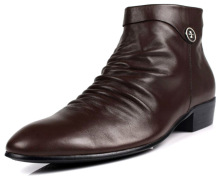 促销正品 头层牛皮男士尖头套脚短靴 松紧带男靴 英伦韩版单靴