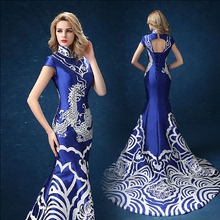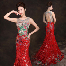 2017新款鱼尾晚礼服长款复古刺绣新娘敬酒服红色修身宴会中式旗袍
