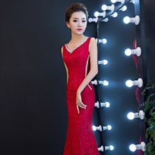婚纱2017春夏新款鱼尾红色礼服晚礼服长款敬酒服新娘结婚宴会修身