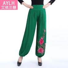 春夏新款民族风女裤大码百搭宽松休闲女裤棉麻绣花灯笼裤潮花苞裤