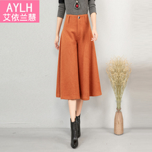 2016秋冬新款修身羊毛呢阔腿裤裙裤女A字九分裤休闲裤靴裤宽腿裤