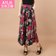 春夏新款亚麻长裤大脚裤棉麻印花甩腿裤高腰裙裤阔腿裤潮女宽腿裤