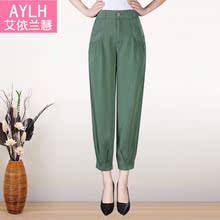 新款夏装棉绸花灯笼裤女款九分裤萝卜裤女士宽松休闲裤子阔腿裤