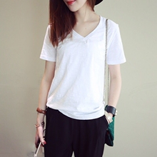 纯棉白色T恤女短袖春夏装2017新款韩版宽松显瘦V领打底衫上衣女潮