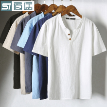 2件装夏季2017新款亚麻短袖T恤男士半截袖体恤上衣潮流中国风男装