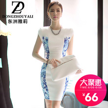 东洲雅莉2017夏季新款改良旗袍裙中长款熟女显瘦青花瓷女装连衣裙