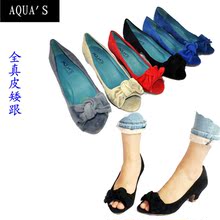 舒适矮跟时尚羊皮蝴蝶结 真皮鱼嘴巴凉鞋 全真皮女鞋 特卖!