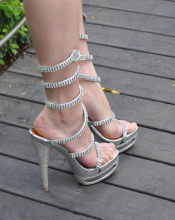 17新款时尚带钻水晶钻蛇形钻钻 凉鞋高跟宴会女鞋款35.5-38码