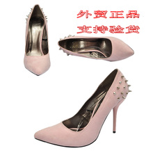 后铆钉粉色高跟性感尖头时装女鞋 欧美原单 断码处理!时尚T台款