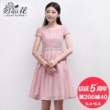 勿忘花2017夏装新款女装气质淑女小清新蕾丝绣花短袖连衣裙夏季女