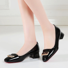情人桂莉春秋新款女鞋浅口粗跟单鞋女 真皮中跟职业百搭大码鞋子