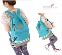 韩版猪鼻子双肩包女大学生书包帆布横条撞色旅行包潮情侣背包包邮