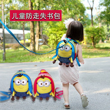 防走失儿童双肩书包宝宝卡通背包小黄人男女款幼儿园小书包防走丢