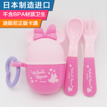 日本代购进口迪斯尼宝宝折叠叉勺带盒婴幼儿童卡通便携餐具锦化成