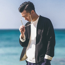 有鲤 春季双面穿中式汉服亚麻开衫 中国风薄外套夹克男 复古男装