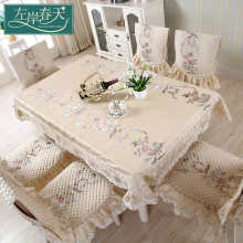 蕾丝桌布布艺长方形座椅套餐桌椅子套餐桌布椅套椅垫套装简约现代