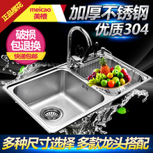 加厚304不锈钢水槽双槽带插刀架套餐拉丝洗菜盆洗碗池双盆包邮
