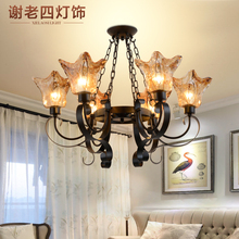 美式吊灯客厅6头铁艺简约卧室灯饰北欧田园餐厅灯具美式乡村吊灯