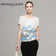 MISAVOGUE/名莎夏装新款152z016清爽波浪条纹宽松休闲短袖T恤套衫
