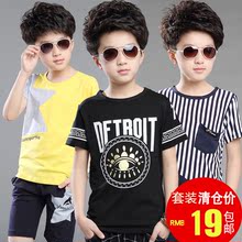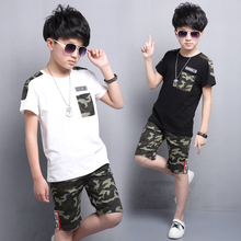 中童男童夏装短袖t恤迷彩套装纯棉3儿童夏季男孩5-7-9-11-13周岁