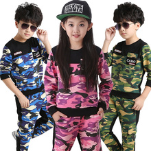 2017童装套装男女中大童春秋迷彩两件套韩版长袖套装运动套装潮