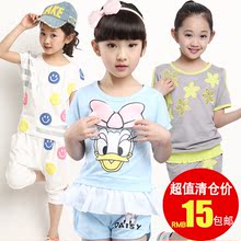 女童夏装套装2017新款韩版儿童中大童特价上衣短袖t恤运动两件套