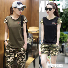 时尚迷彩服套装大码女装夏新款韩版修身显瘦两件套纯棉休闲运动装