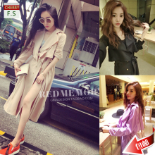韩版时尚名媛气质中长款性感开衩绑带开衫外套风衣连衣裙女春2017
