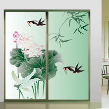 春天燕子飞 荷花图 简约清爽 玻璃贴膜 衣柜贴纸 防水膜 1201201