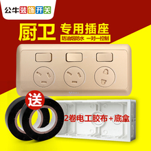 公牛开关插座香槟金厨房专用电源插座三插一体式插座面板赠底盒