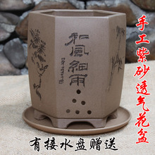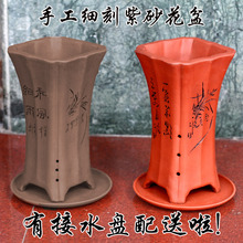 花盆 紫砂花盆 兰花盆 陶瓷花盆 宜兴紫砂花盆 送紫砂托盘 手工