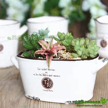 长方形四足多肉植物陶瓷花盆 韩式拼盘组合盆栽肉肉植物花盆