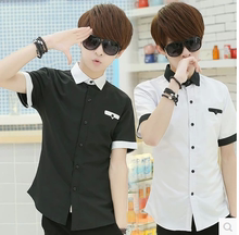 非主流男士短袖衬衫青少年韩版潮2015男装春夏衣服个性打底衫yifu