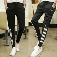 春秋季牛仔裤男士小脚裤修身潮男破洞裤子韩版情侣束脚哈伦裤男生