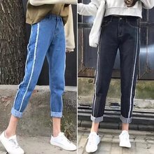 2017春夏季新款韩版宽松哈伦牛仔裤女生潮流毛边牛仔裤学生长裤子