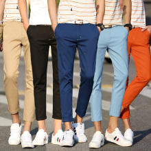 夏季英伦男士九分休闲裤修身款小脚9分布裤韩版弹力男裤子薄款潮