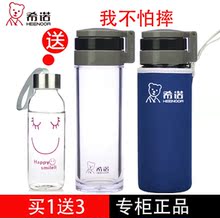 正品希诺玻璃杯男女士水杯便携防漏过滤茶杯6075单层大容量杯子