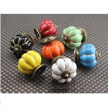 卡通陶瓷拉手欧式田园乡村抽屉橱衣柜门把手金丝青古五彩南瓜拉手