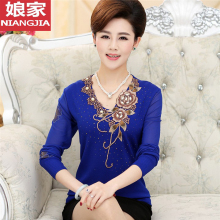 中老年女装春夏新款针织衫宽松中年妈妈装雪纺衫长袖纱袖上衣T恤