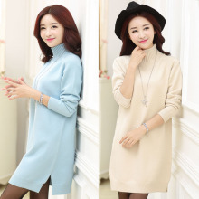 秋冬韩版宽松半高领毛衣女套头中长款羊绒衫连衣裙加厚针织打底衫