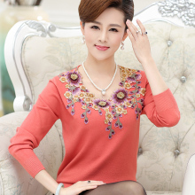 中老年女装春装新款毛衣打底衫中年妈妈装绣花针织衫羊毛衫上衣女