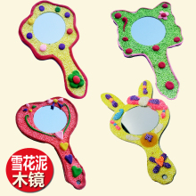 白胚木制木质小镜子DIY超轻粘土珍珠雪花泥儿童手绘涂色彩泥玩具