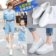 乐福鞋女2017夏季真皮 小白鞋 单鞋松糕鞋百搭懒人一脚蹬女鞋