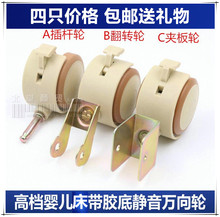 四只价棕色静音插杆翻转夹板万向静音婴儿童小床轮子橡胶脚轮轱辘