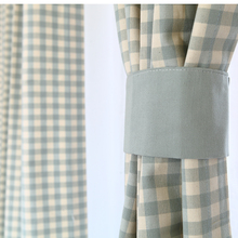 明润简约美式田园小清新纯棉蓝色绿色格子半遮光卧室书房窗帘定制