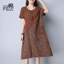 问棉大码中裙女2017夏季新款民族风绣花中袖纯棉连衣裙宽松打底裙