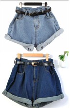 夏季MM热裤2016新款女装复古卷边高腰宽松大码阔腿裤牛仔短裤女