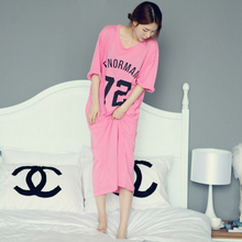 韩版大码女装数字卡通印花闺蜜学生体恤宽松长款纯棉短袖t恤裙夏