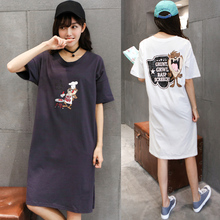 新款夏装韩版女装卡通纯棉体恤连衣裙大码宽松长款休闲短袖T恤裙