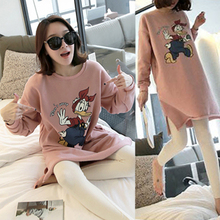 2017春装新款韩版大码女装圆领长袖卡通宽松长款加绒卫衣连衣裙女